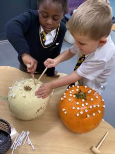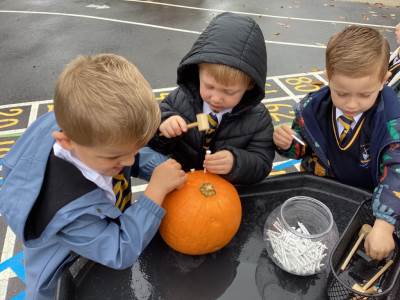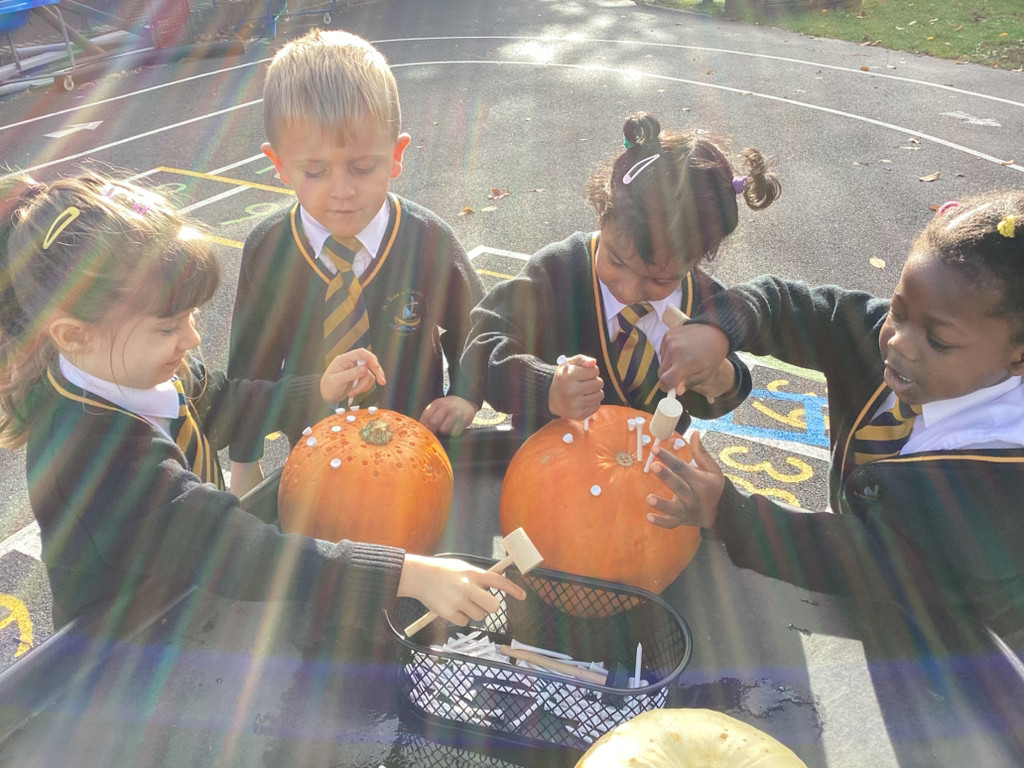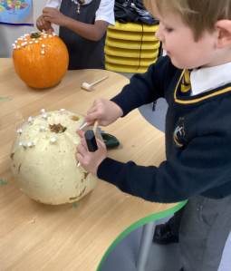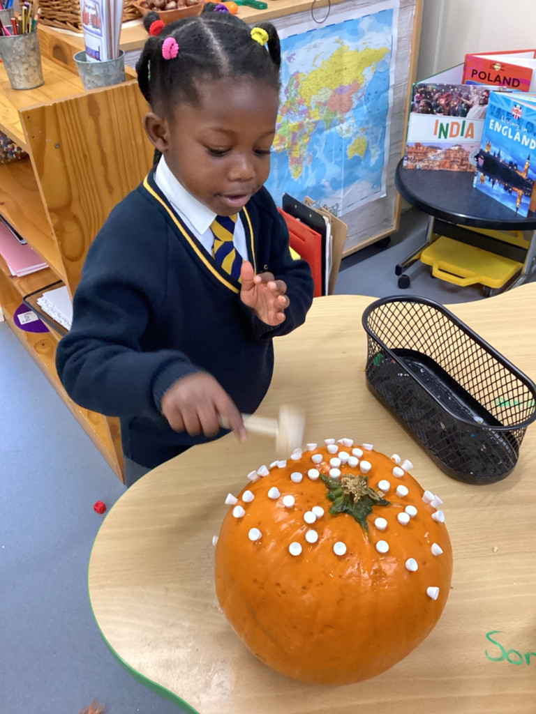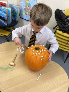 We have been loving Autumn! We have made Conker soap and we have been exploring Pumpkin smashing and strengthening our fingers by hammering into the pumpkin. We have also enjoyed printing with Autumn vegetables into the paint to create pictures. Happy half term everyone!